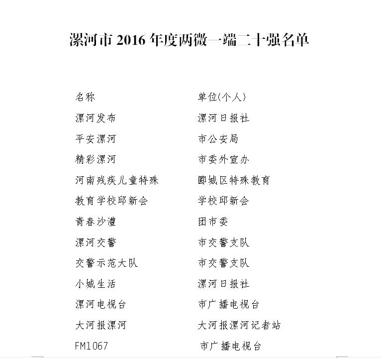 3. 漯河市2016年度優(yōu)秀網(wǎng)絡(luò)平臺名單