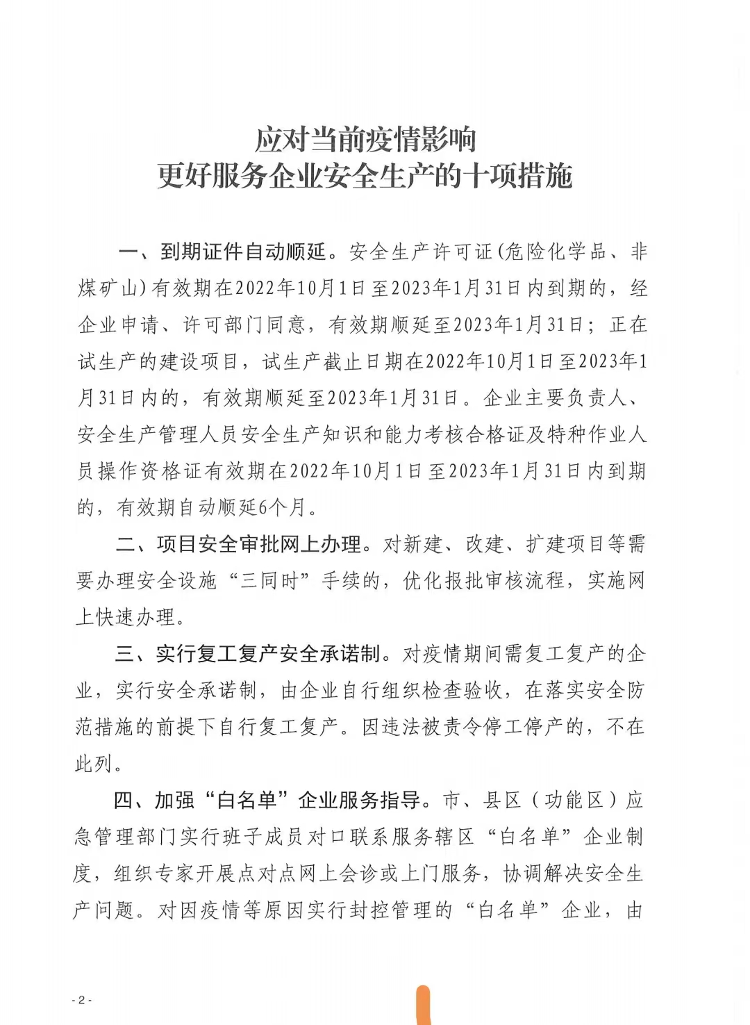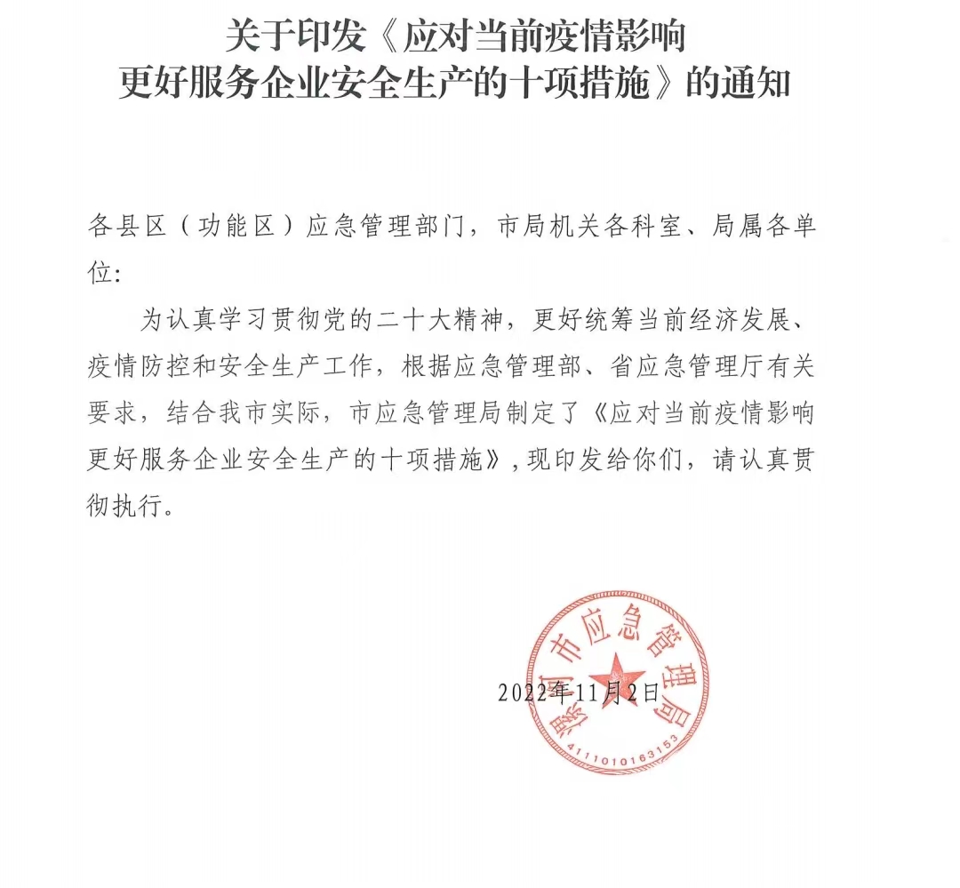 關于印發《應對疫情影響更好服務企業安全生產的十項措施》的通知