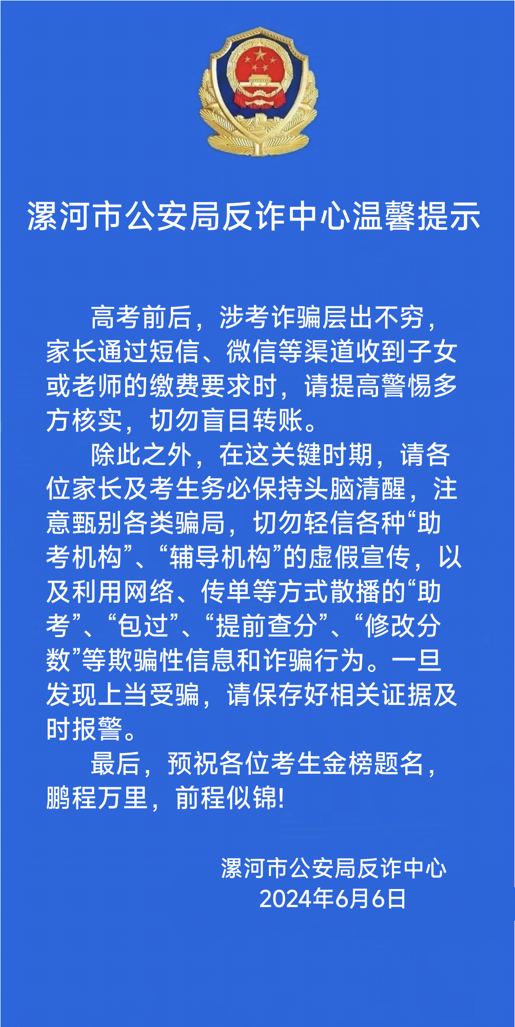 漯河市公安局反詐中心溫馨提示