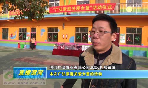 漯河廣源置業有限公司總經理鄭鎮城:到蓮花鎮中心幼兒園,地處比較偏僻,學生貧困家庭和留守兒童居多,所以作為我們企業一個有社會感的企業,我們覺得這是義不容辭的,我們也響應國家企業這個扶貧的號召,積極表示一點我們的愛心,以后這個有限的時間里面我們積極的踴躍的參與這些活動。表示一下我們企業的愛心。