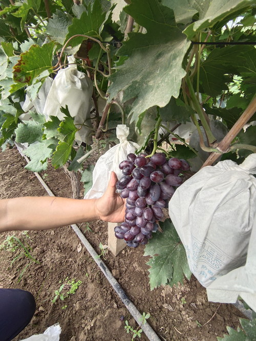 記者摘下幾顆“醉金香”葡萄品嘗,皮薄、甜度濃、飽滿多汁,口感香甜。記者發現,有部分葡萄已經熟透,出現掉果現象。