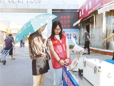 在受降路農貿市場,網格員用放心秤幫市民核重。