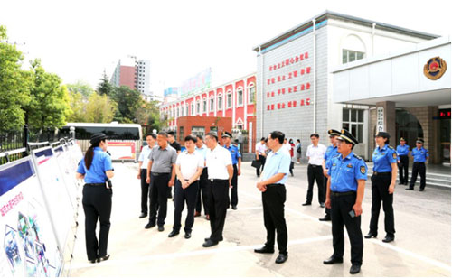 在市城市管理綜合執(zhí)法支隊(duì)院內(nèi),陳曉偉一行邊走邊看,一幅幅服務(wù)型執(zhí)法的匯報(bào)版面引得大家時(shí)時(shí)駐足,陳曉偉不時(shí)向陪同人員詢問,并對(duì)市城市管理綜合執(zhí)法支隊(duì)服務(wù)型執(zhí)法工作的成果連連稱贊。