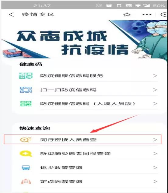 選擇同行密接人員自查,點(diǎn)擊查詢(xún);