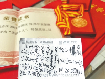 追悼會后,李華在家里意外發現一封兒子偷偷寫給爸爸的“信”,筆跡稚嫩,還夾雜著拼音。“信”中寫道:“爸爸是我心中最bang的爸爸,你是個yingxiong。你生的wei大,死的光榮。你安xi吧。我們都知道你很lei。”那一刻,李華鼻子一酸,眼淚又下來了。