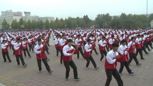當天上午9時許,展演開始,漯河四高的2000名學子身穿校服,伴隨著激昂的音樂,開始練習心意六合拳。他們動作整齊、出拳穩(wěn)重,腳步落地鏗鏘有力,場面令人震撼。他們用最嚴謹和精湛的武術(shù)技藝,演繹博大精深的中華武術(shù)文化,展示傳統(tǒng)武術(shù)的力量和魅力,為廣大武術(shù)愛好者奉上一場宏達的饕餮盛宴。