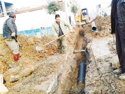 “這個主管道有1500多米,管道直徑有35公分,足夠滿足這幾百戶村民的生活排水。”指著眼前鋪設在深溝里的一條墨綠色的“長龍”,楊俊民等人七嘴八舌地議論著。