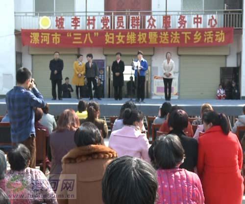 在國際“三八”婦女節來臨之際,為更好的提高婦女同胞的法律維權意識,漯河市婦聯在召陵區坡李村舉辦婦女維權暨送法下鄉活動,將法律送至農村婦女身邊。