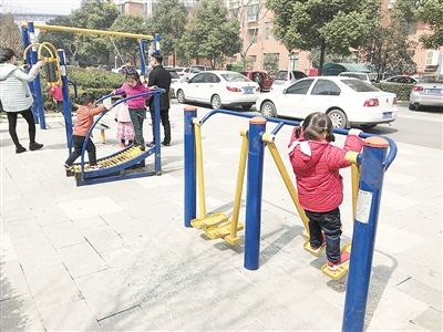 “小區里孩子太多了,天氣好的時候,經??吹剿麄儊硗?。”在市區人民路一小區里,正在帶孩子玩的王老伯告訴記者,小區里的健身器材旁,最常見的就是老人和孩子,老年人喜歡健身,會上去練一練,孩子也習慣上去玩,健身器材旁邊就像是個小型游樂場。