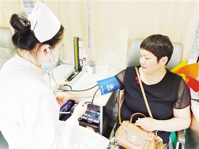休息半小時血壓平穩后,張冬梅為喬女士獻血400毫升。