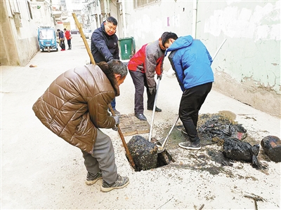 “這個家屬院是老舊小區,平時沒有人管理維護。家屬院的基礎設施陳舊,下水道老化淤積了大量污垢,堵塞嚴重,影響居民生活。臨近春節,居民對此束手無策,只能求助社區。”郾城區沙北街道昆侖社區第六網格網格長王曉云說,接到居民的反映后,她便到現場勘察,發現家屬院里12個沉淀池全部堵塞了。