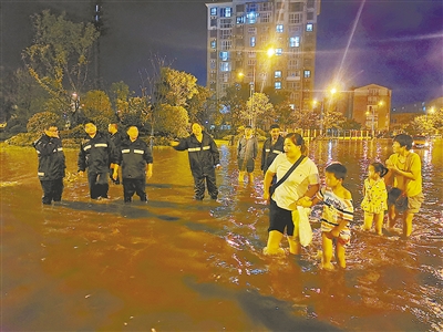 (文/圖 記者 朱 紅)8月1日下午,市區下起暴雨。有的道路上窨井蓋被雨水沖走,城管隊員守在窨井周圍,提醒過往市民注意安全,讓人感動。