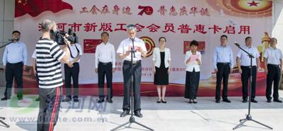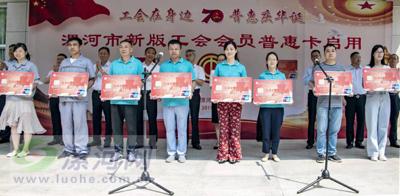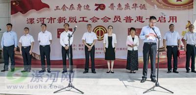 2019年9月9日,漯河市總工會攜手中國工商銀行漯河分行、鄭州銀行漯河分行、漯河市公交集團等單位共同舉行新版工會普惠卡啟動儀式。漯河市人大副主任、市總工會主席陳平;省工行王愛軍專家、楊景勝總經理、工行漯河分行王齊鋒行長、鄧超副行長;鄭州銀行漯河分行韓寶平行長;各縣區總工會分管保障及工會惠普卡業務的分管主席、部長同志;市直局委工會和住漯基層工會負責同志;雙匯集團、銀鴿集團、3515公司職工代表;工商銀行、鄭州銀行分支機構負責同志;公交集團車長代表和普惠商家代表、新聞媒體朋友200多人參加啟動儀式。