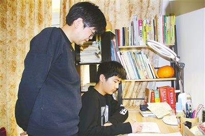 宋莉娟的丈夫李康在輔導兒子學習。