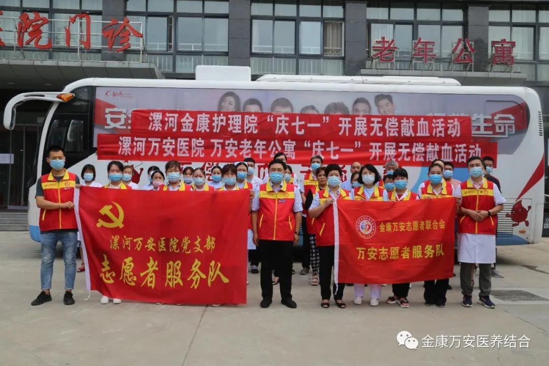 我為七一獻熱血,滴滴鮮血汩汩流,“七一”建黨節這天,金康萬安員工以自己的實際行動,樹立了新時期醫護人員的良好風貌,詮釋了金康萬安“孝慈仁善”的企業文化,更彰顯了金康萬安人熱心公益和醫者仁心的高尚情懷。