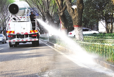 3月14日,市園林處在天山路清洗道邊石。本報記者 范子恒 攝