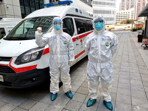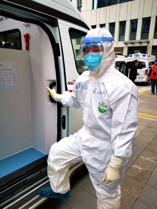 市二院醫(yī)療急救運(yùn)轉(zhuǎn)隊(duì)是2月5號(hào)到達(dá)武漢,經(jīng)過兩天的緊張集訓(xùn),今天他們就要開始接到首次急救運(yùn)轉(zhuǎn)任務(wù)。“第一次經(jīng)歷如此重大的戰(zhàn)斗,會(huì)緊張、有壓力。”市二院轉(zhuǎn)運(yùn)醫(yī)療隊(duì)的隊(duì)員們深知,每一次轉(zhuǎn)送任務(wù)就是離危險(xiǎn)更近一步,但沒有一個(gè)人打退堂鼓,大家相互鼓勵(lì)打氣,克服了許多難以想像的困難。執(zhí)行任務(wù),穿上密不透氣的防護(hù)服,一穿就是幾個(gè)小時(shí),衣服濕了又干干了又濕。因?yàn)榕律蠋桓液人貋砗笠?jīng)過嚴(yán)格的車輛和個(gè)人消毒處理,忙活完,大家累得都吃不下飯。