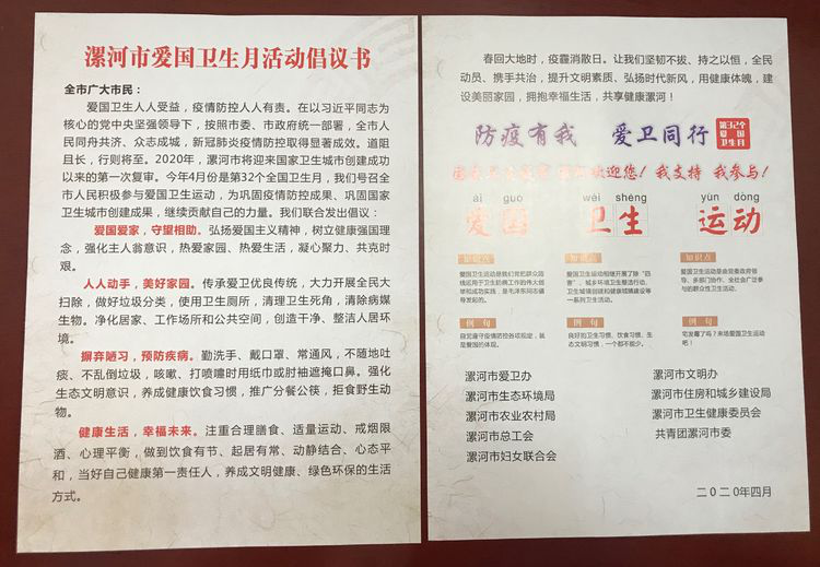 2020年4月是第32個愛國衛生月,今年的活動主題是“防疫有我、愛衛同行”。4月3日,郾城區沙北街道海河社區組織志愿者深入店鋪、小區中發放環境衛生宣傳材料,并結合當前新冠肺炎疫情向大家普及衛生健康知識,號召大家共同行動起來,摒棄陋習,養成良好的衛生習慣。