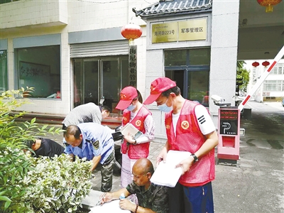志愿者走進(jìn)小區(qū)開展創(chuàng)文調(diào)查。