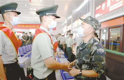 在漯河西站,退伍老兵和戰友道別。