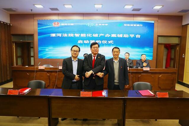 12月16日上午,漯河法院智能化破產辦案輔助平臺啟動簽約儀式舉行,漯河市中級人民法院與北京華宇九品科技有限公司、中國郵政儲蓄銀行漯河分行合作簽約,正式啟動漯河法院智能化破產辦案輔助平臺,該院破產審判開啟數字化新篇章。漯河市中級人民法院黨組書記、院長陳松林出席并致辭。