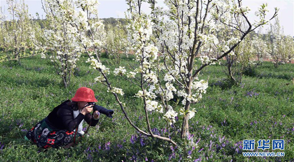 3月22日,云南省曲靖市沾益區炎方鄉炎方村的農民在果園里作業。 春季里,云南省曲靖市沾益區鄉村果園里的桃花梨花競相綻放,景色秀美,吸引游人前來觀光。 新華社記者 楊宗友 攝