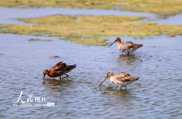 近年來,世界自然遺產地江蘇省鹽城市東臺條子泥濕地,不斷加大濕地修復、退漁還濕力度,為遷徙的水鳥提供更多的棲息覓食場所。近日,大批白腰杓鷸、大濱鷸、斑尾塍鷸、黑尾塍鷸、半蹼鷸、黑腹濱鷸、紅頸濱鷸、環頸鴴、蒙古沙鴴等鴴鷸類南遷候鳥在修復的高潮位棲息地停歇,取得了良好的生態效益。孫家錄/人民圖片