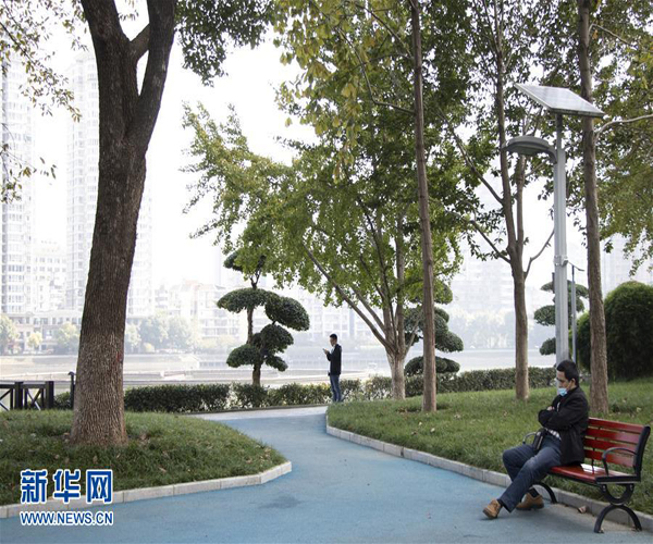 10月27日,市民在武漢市新華路與建設大道相交處的“口袋公園”內歇息。新華社記者 熊琦 攝