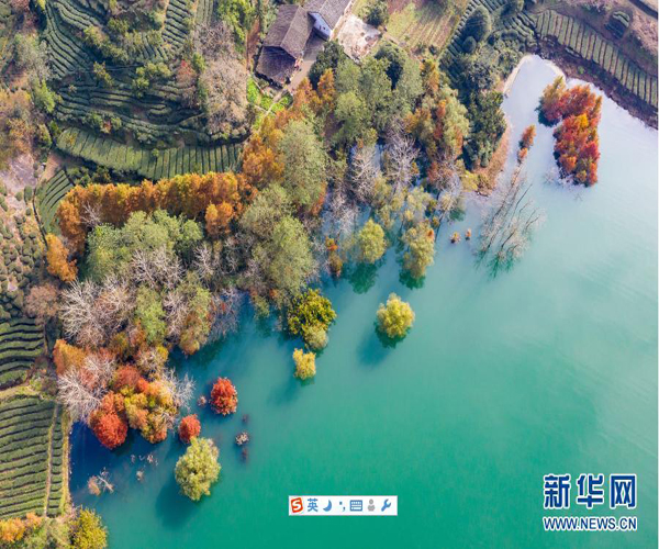 11月29日拍攝的三峽庫區湖北省秭歸縣茅坪鎮蘭陵溪村多彩的庫岸(無人機照片)。