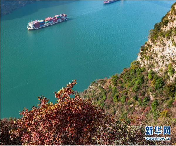 11月29日,船舶行駛在長江三峽湖北省秭歸縣兵書寶劍峽水域。