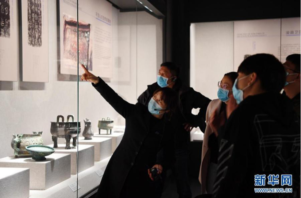 4月5日,參觀者在觀看河南博物院展出的骨笛