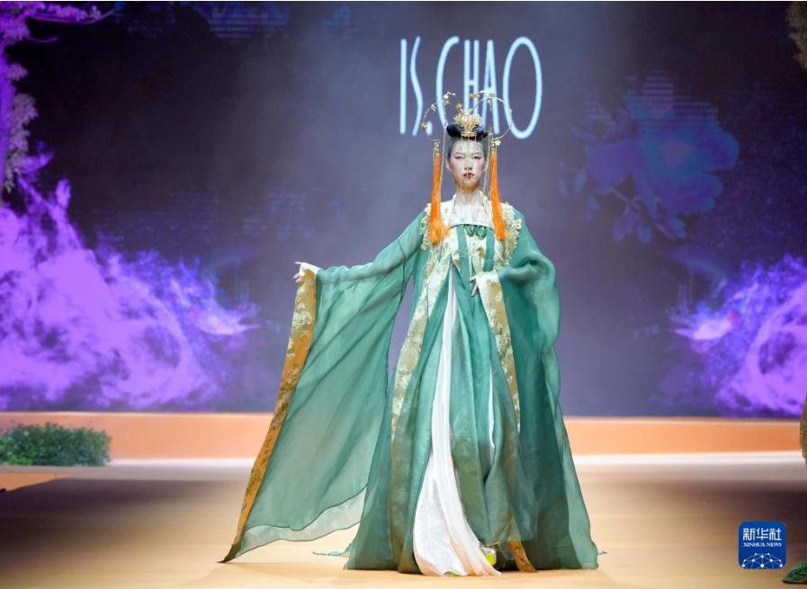 10月18日,模特在展示中國(guó)知名設(shè)計(jì)師、金頂獎(jiǎng)獲得者張義超設(shè)計(jì)的時(shí)裝。