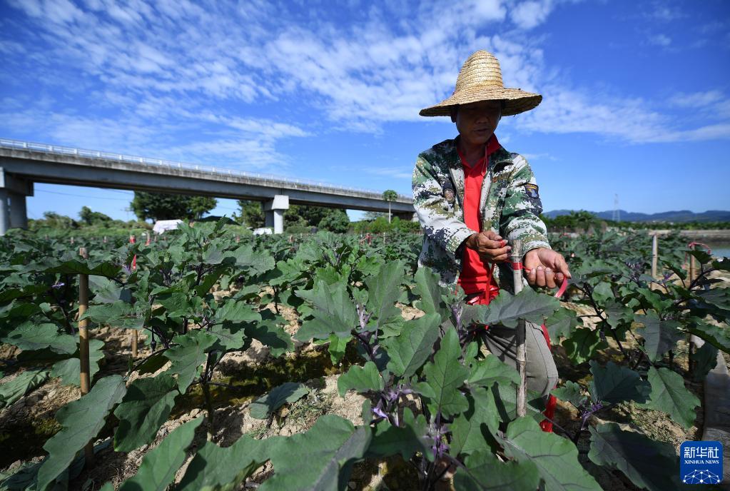 11月16日,三亞市崖州區的農民在管護茄子田。