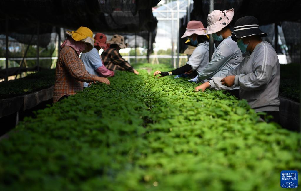 11月16日,工作人員在三亞市熱帶農業科學研究院育苗大棚中分揀青瓜苗。新華社記者 郭程 攝
