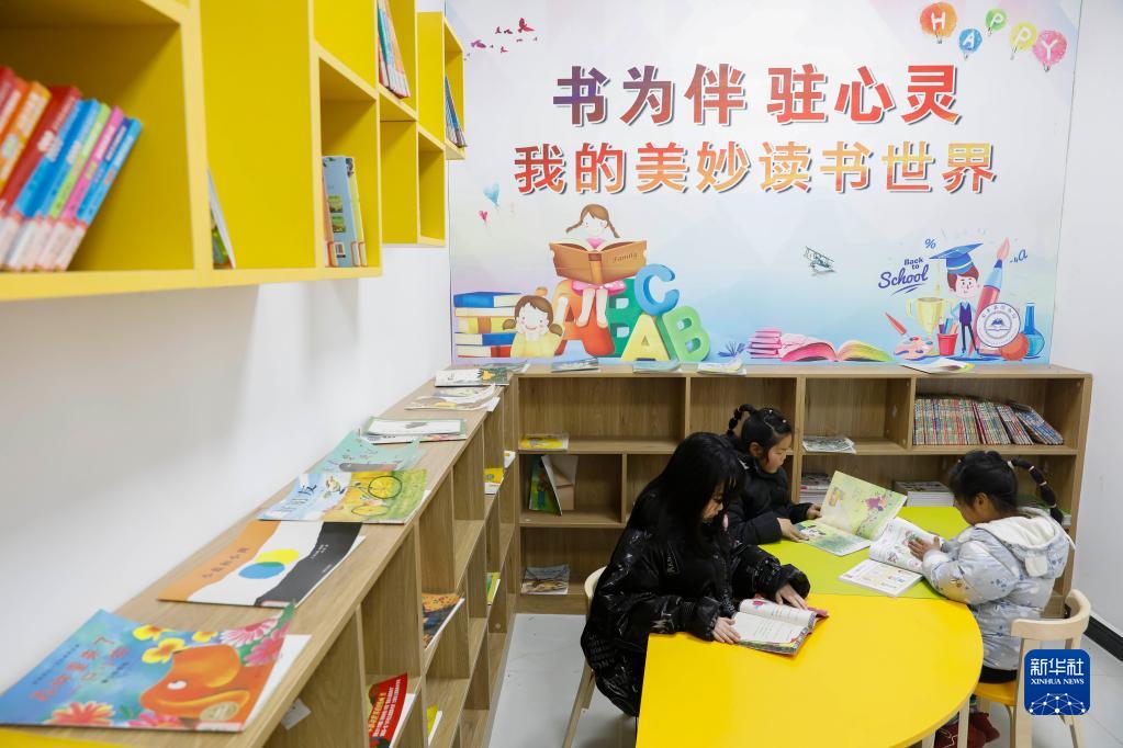 2月8日,小朋友們在張八橋鎮(zhèn)圖書館閱讀。