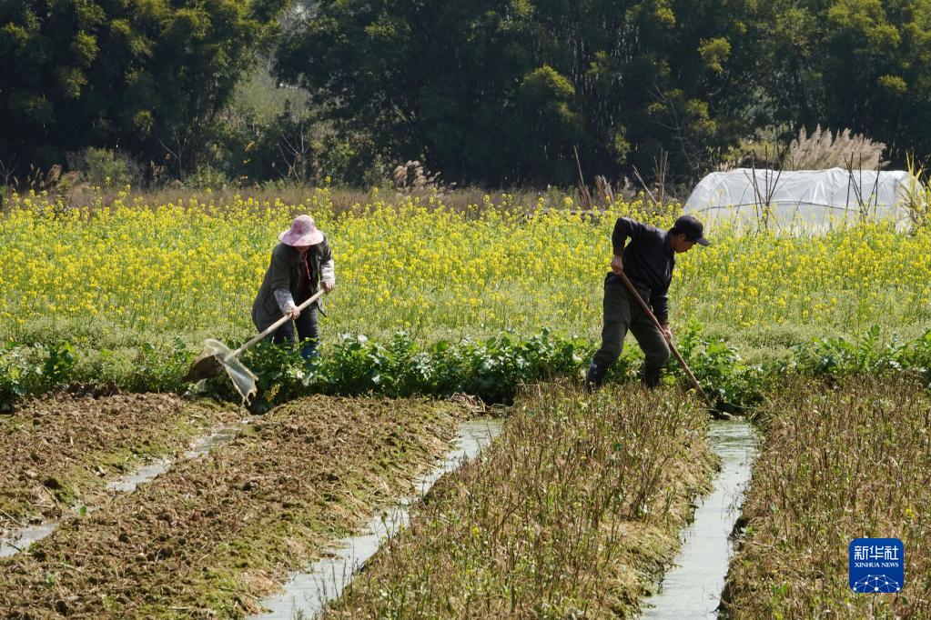 2月24日,村民正在四川省射洪市沱牌鎮桑樹林村地里勞作。