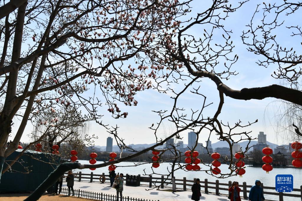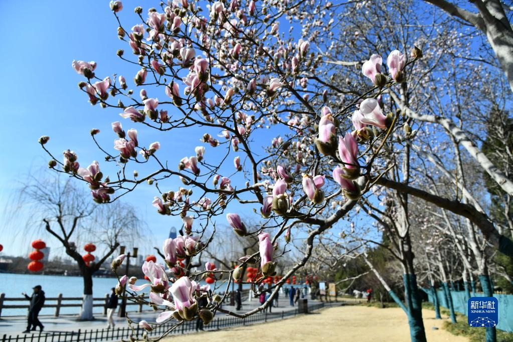 近日,山東省濟南市天氣晴好氣溫回升,大明湖景區(qū)內(nèi)玉蘭花陸續(xù)綻放,給城市帶來了春天的氣息。