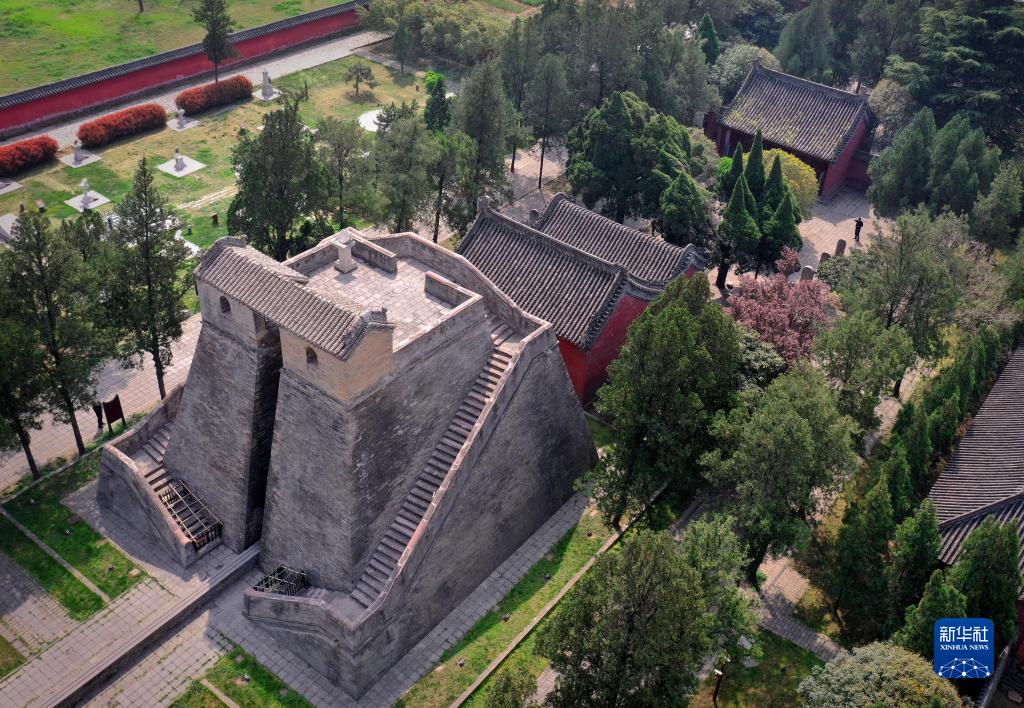 這是登封“天地之中”歷史建筑群中的觀星臺(4月7日攝,無人機照片)。