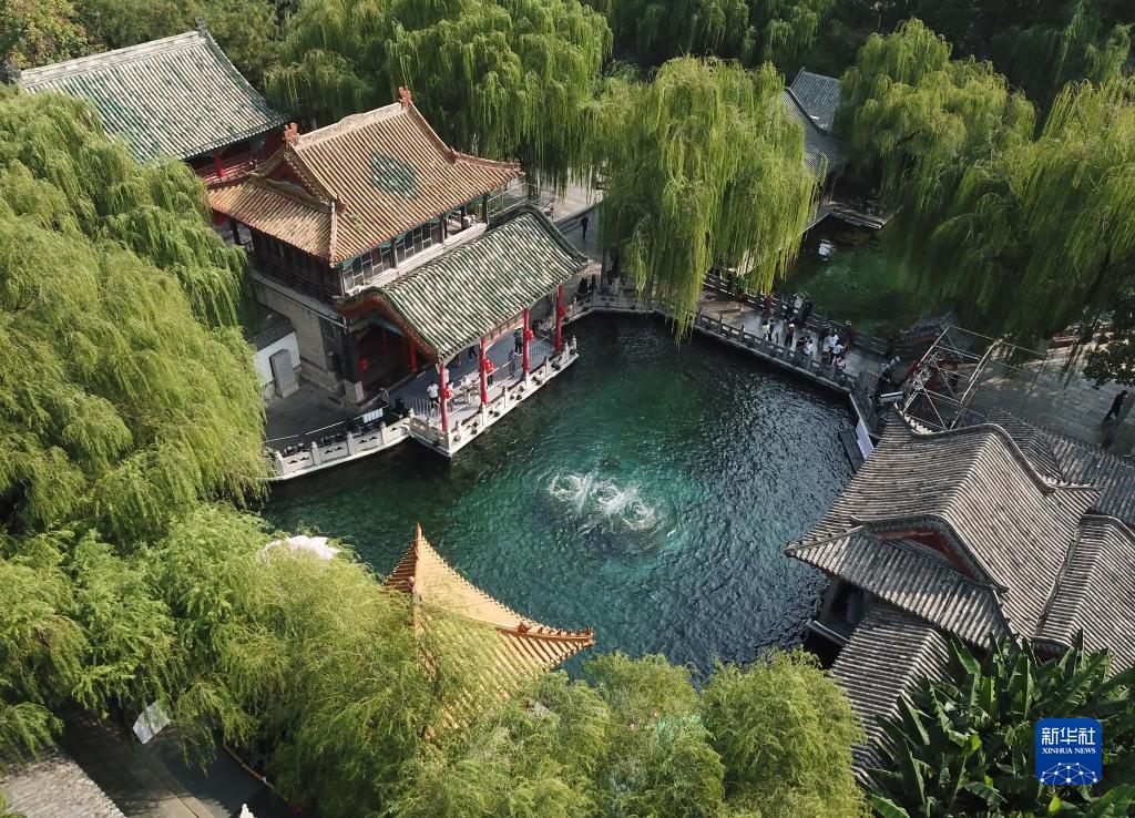 9月6日,濟南趵突泉泉水噴涌(無人機照片)。
