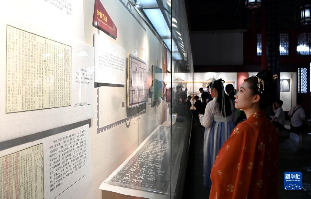 游客在西安鐘樓內參觀游覽(5月1日攝)。