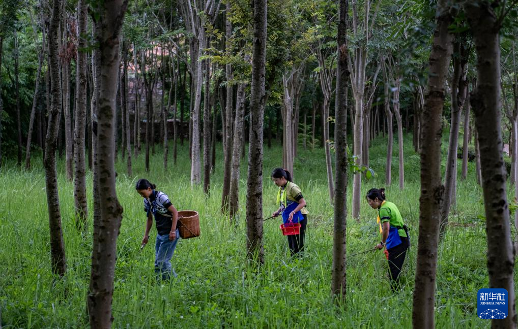 7月3日,云南省文山壯族苗族自治州文山市東山鄉小馬廠村的村民在林間采摘野生食用菌。