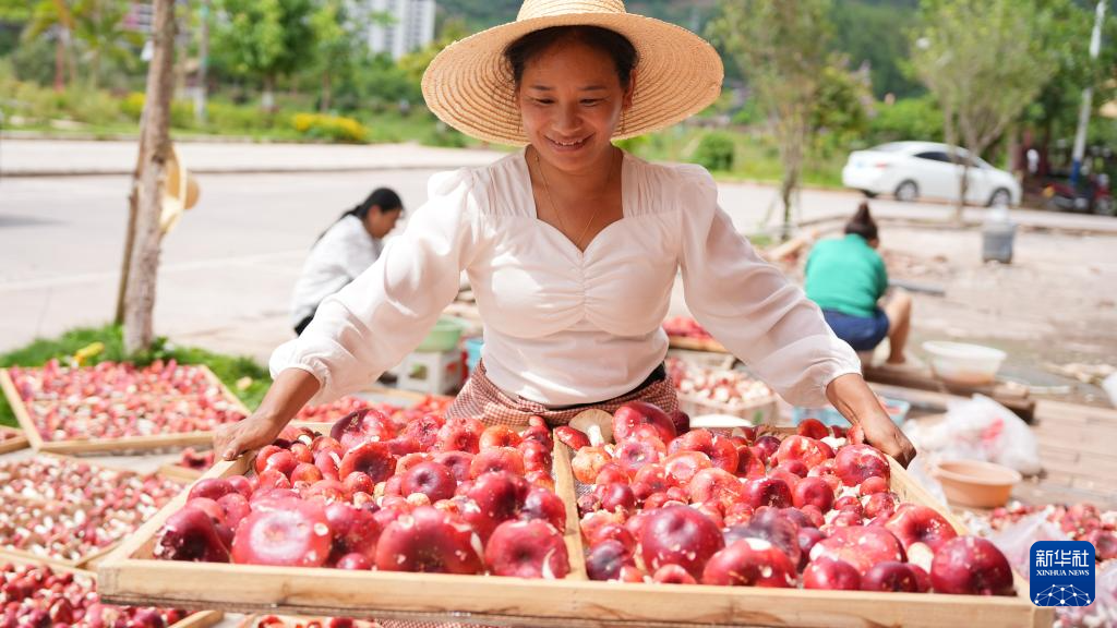 7月2日,在云南省普洱市鎮沅彝族哈尼族拉祜族自治縣恩樂鎮一家野生菌收購合作社,工人們忙著將野生紅菌清洗干凈晾曬。