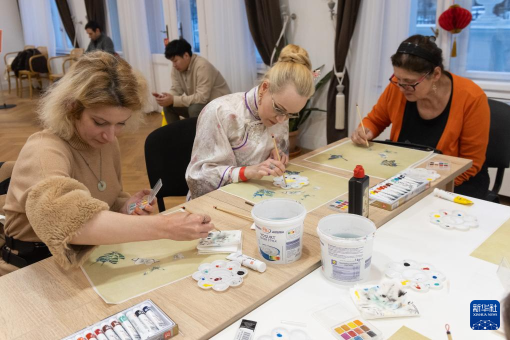 1月17日,在匈牙利布達(dá)佩斯,人們?cè)?ldquo;指尖上的非遺——中國(guó)文化體驗(yàn)日”為主題的2025“歡樂(lè)春節(jié)”活動(dòng)上體驗(yàn)中國(guó)繪畫。