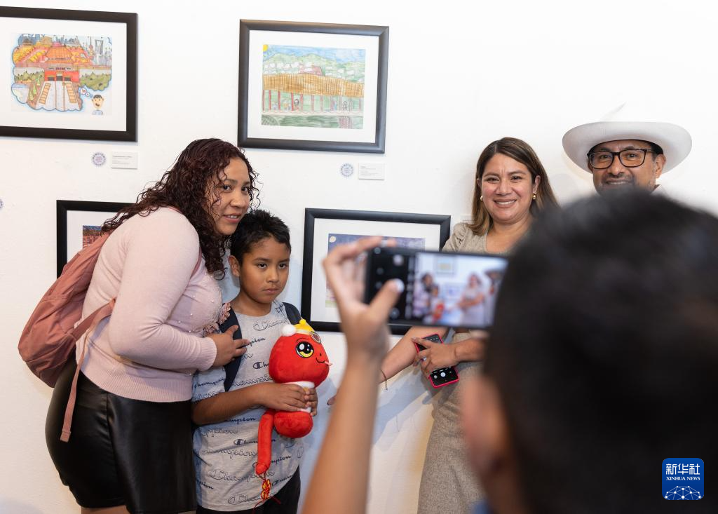 1月18日,在墨西哥首都墨西哥城舉行的第十一屆“我想象中的中國(guó)”兒童繪畫比賽活動(dòng)上,參賽者和家人手拿蛇年春節(jié)玩偶在畫作前留影。