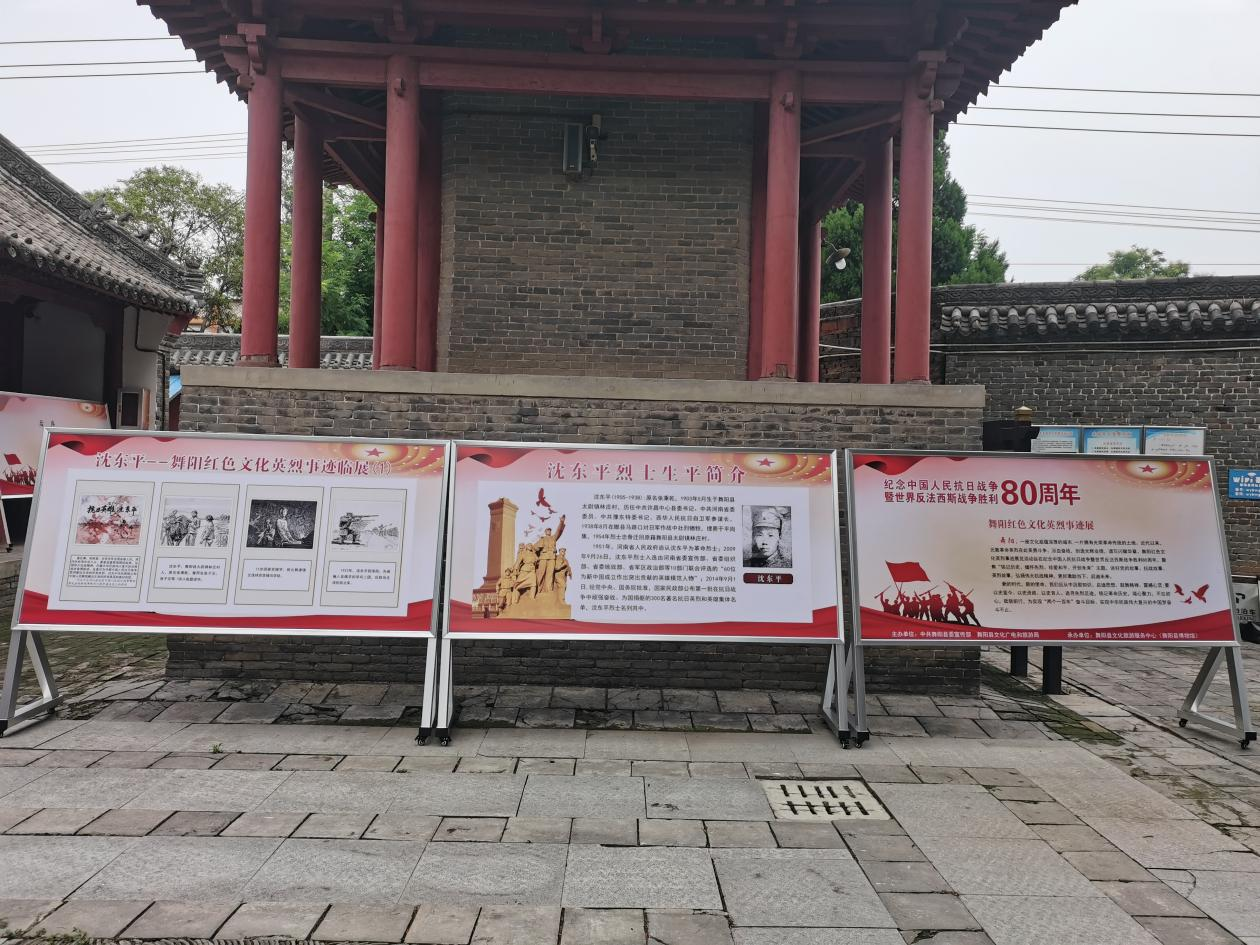 2025年8月15日,由中共舞陽縣委宣傳部、舞陽縣文化廣電和旅游局主辦,舞陽縣文化旅游服務中心(舞陽縣博物館)承辦的“紀念中國人民抗日戰爭暨世界反法西斯戰爭勝利80周年 沈東平--舞陽紅色文化英烈事跡臨展”在舞陽縣博物館黨史展廳廣場舉辦。